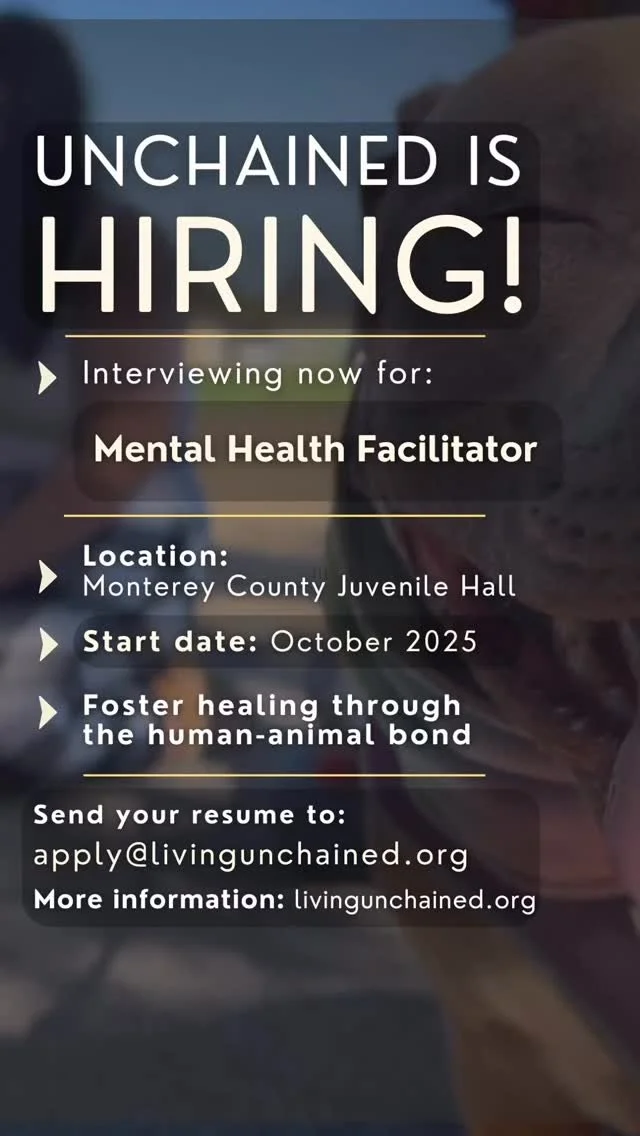 We’re seeking a Mental Health Facilitator to join our team and help guide UnChained's newest program at Monterey County Juvenile Hall in Salinas, CA.